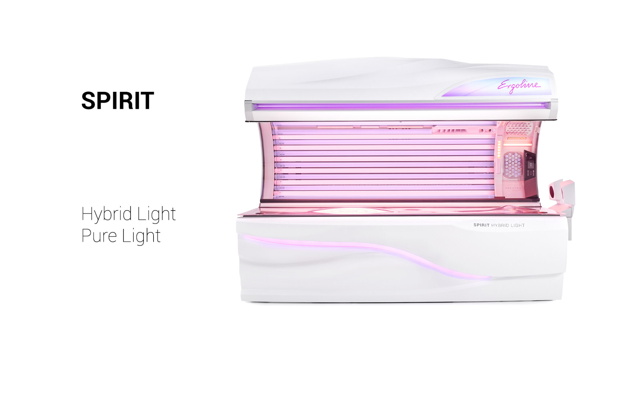 Ponadczasowy i elegancki design Ergoline Spirit wyznacza nowy standard w klasie kompaktowej dzięki innowacyjnym opalaczom LED i lampom Beauty Light.